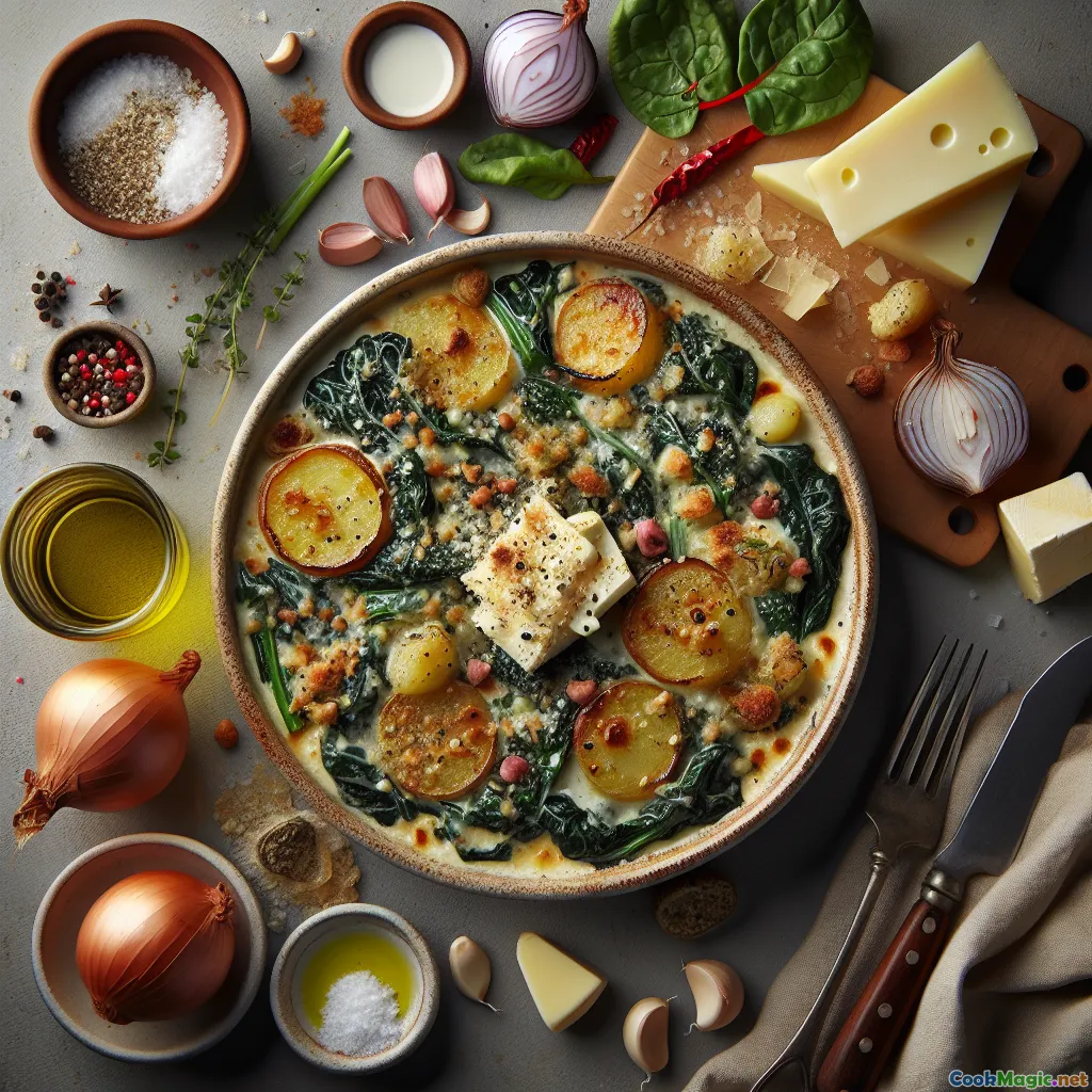A cozy Swiss gratin marrying silky chard, nutty Appenzeller, and a crisp rösti crust, baked in creamy mustard-nutmeg sauce for an irresistibly golden, bubbling casserole.