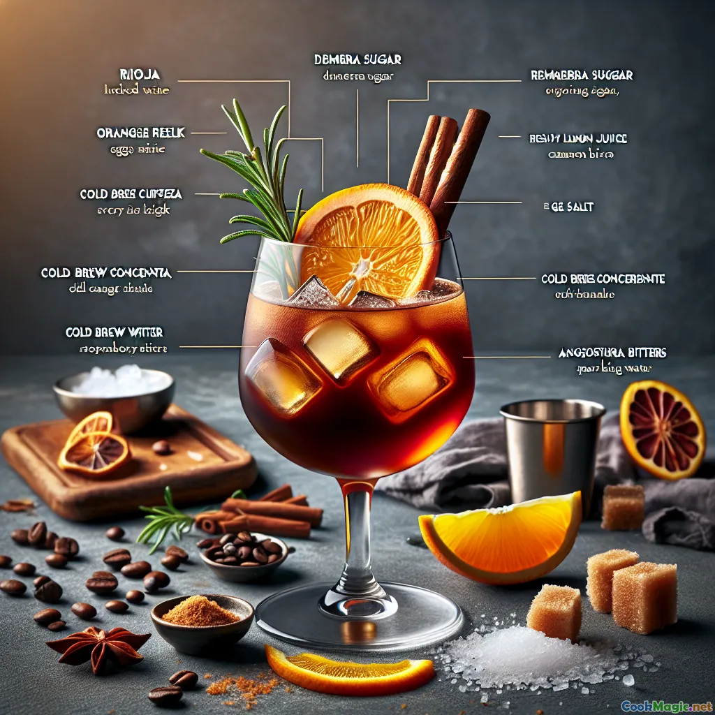 A bold Spanish red wine and espresso cocktail with citrus, subtle spice, and silky foam—bright, aromatic, and brunch-ready.