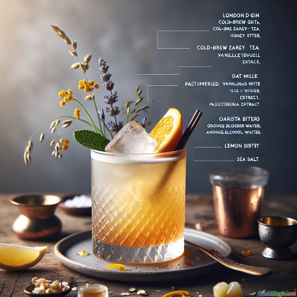 Silken Sipper is a contemporary British cocktail that celebrates the elegance of afternoon tea with the swagger of a proper gin drink. Imagine the perfume of Earl Grey—bergamot-bright and gently tannic—meeting the botanical spine of London dry gin, the round sweetness of honey, and a whisper of vanilla. Shaken with pasteurized egg white (or aquafaba) and a touch of barista oat milk, it yields a cloud-like foam and a body as smooth as satin. It feels indulgent yet balanced, an homage to English tea culture translated into the language of modern mixology.