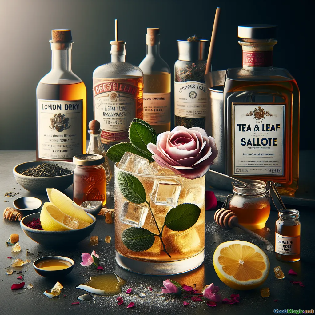 An aromatic English beverage marrying classic tea with gin, herbal notes, floral rose, and honey syrup for an elegant afternoon or evening refreshment.