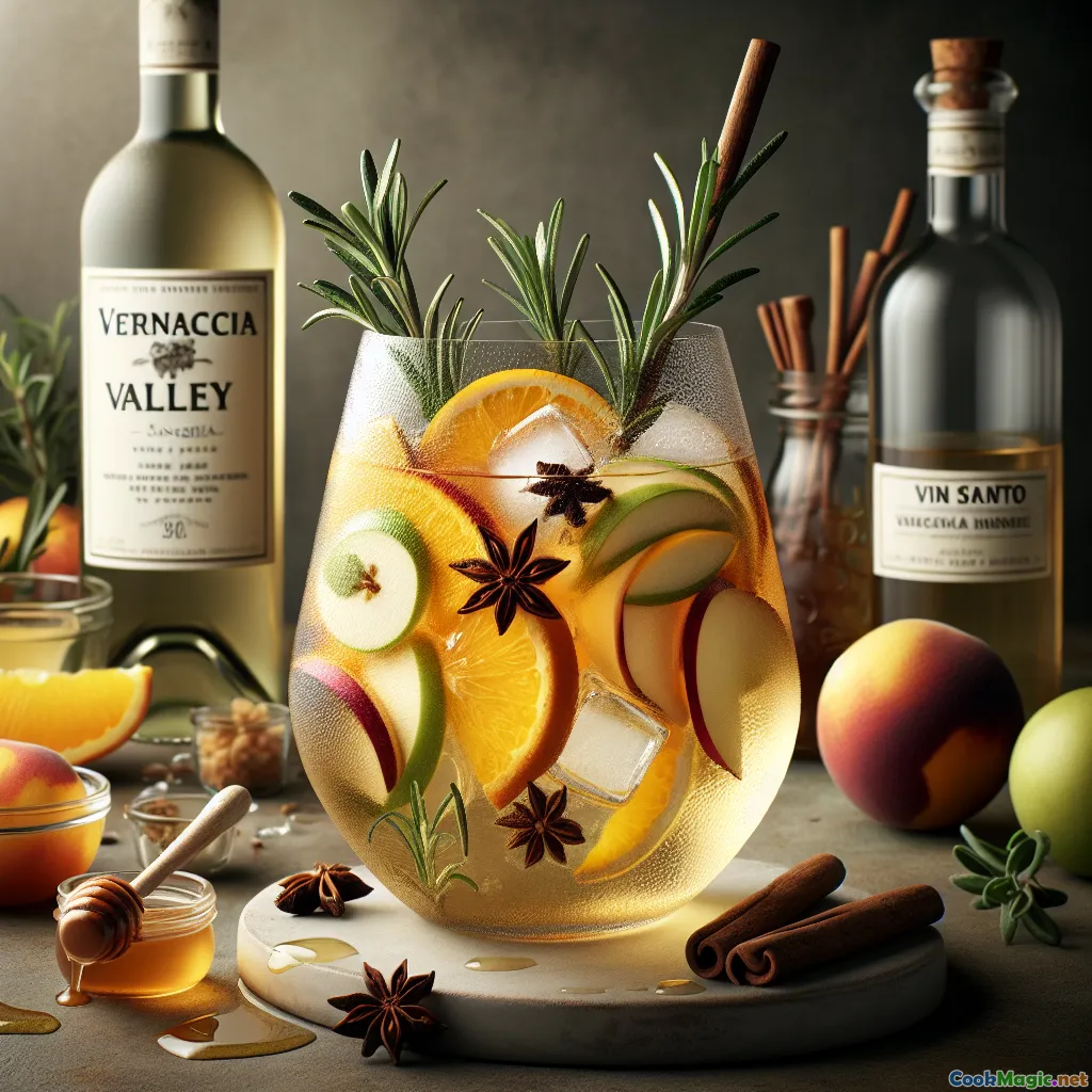 Sangria is Spanish by birth, but the aperitivo culture of Italy welcomes adaptation grounded in local terroir. Tuscany’s culinary rhythm prizes simplicity—few ingredients of high quality—so swapping in Vernaccia and Tuscan pantry staples like acacia honey and rosemary feels both respectful and regionally expressive. Think of this drink as a summer postcard from San Gimignano’s medieval towers: sunlit stone, cypress shadows, and citrus caught in a sea breeze.