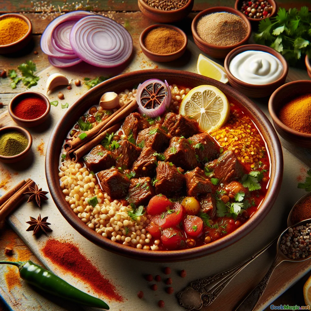 Desert Spiced Jareesh Stew is a hearty, soul-warming bowl born of the Arabian Peninsula, where ingenuity in sparse landscapes shaped cuisine over centuries. Jareesh—cracked wheat—has nourished families across central Saudi Arabia long before supermarket shelves teemed with global grains. In this stew, it transforms humble pantry staples into velvety comfort, absorbing aromatic stock and lending a gentle creaminess without dairy. The other star is loomi, the sun-dried lime that captures desert sunshine in compact, smoky-citrus orbs. Together they turn tender lamb, tomatoes, and spices into a perfumed, satisfying meal fit for a family gathering.