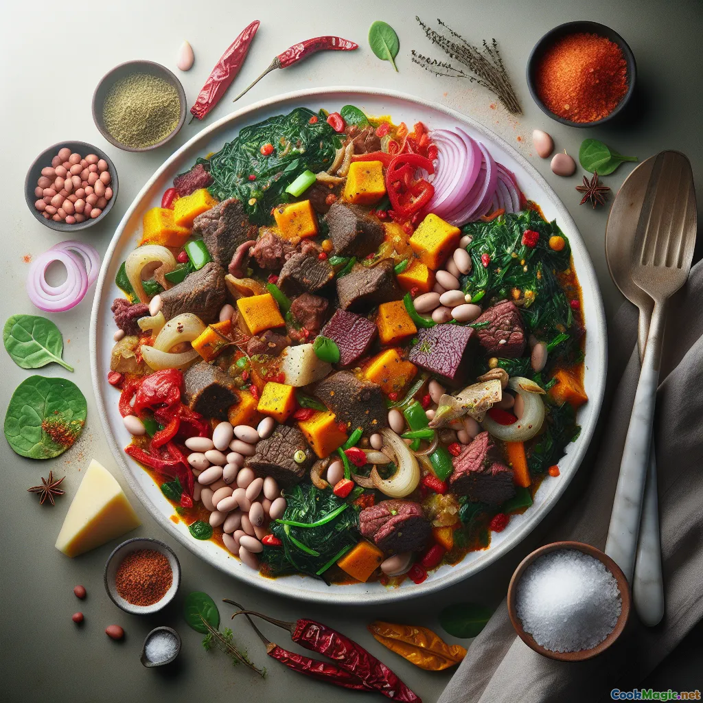 Egusi and Goat Meat Medley is a richly layered Nigerian classic that showcases the deep nutty flavor of ground melon seeds (egusi) and the succulent, slightly gamey character of goat. This dish is a study in contrasts: creamy and hearty from the egusi, bright and aromatic from peppers and onions, and irresistibly savory thanks to palm oil, fermented locust beans, and optional smoked fish. It’s the sort of stew that anchors family gatherings, invites conversation, and begs for a traditional pairing like pounded yam, eba, or fufu.