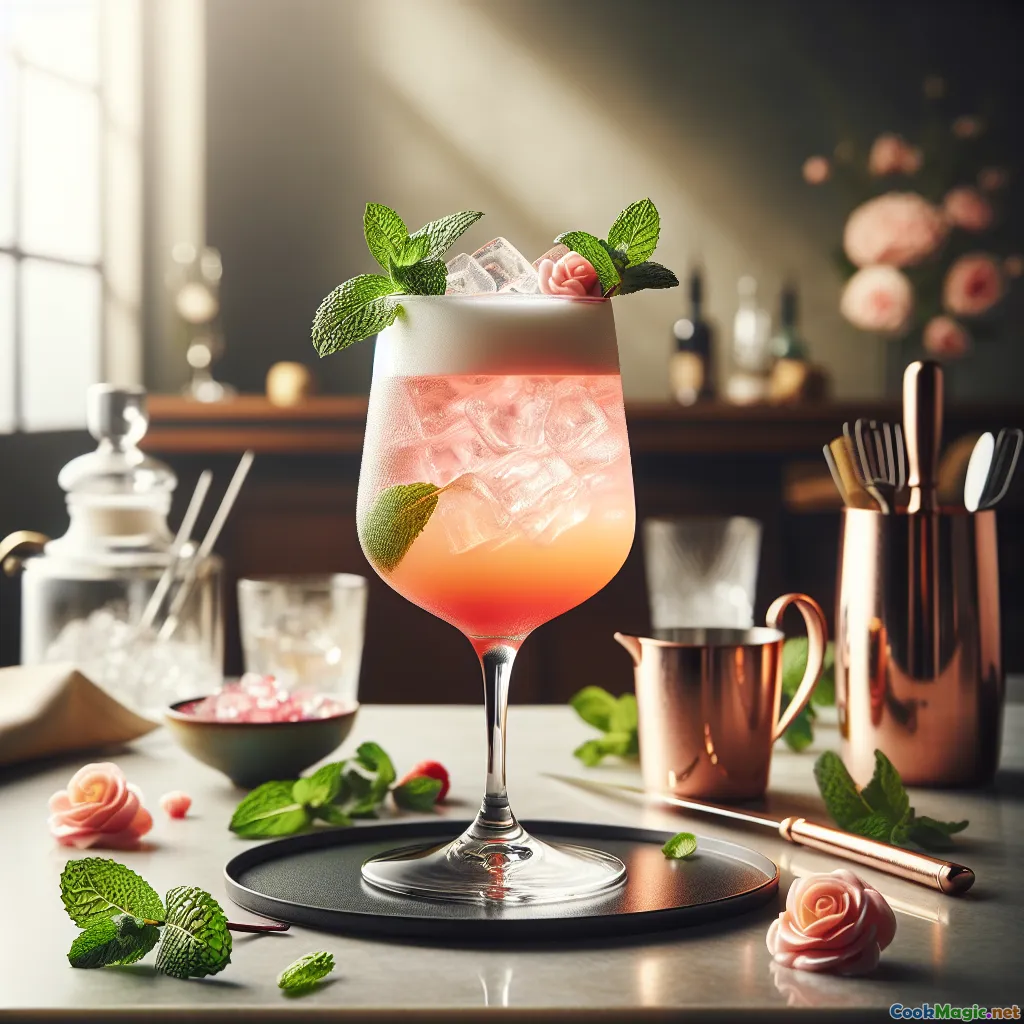 Rose Veil Mint Harmony is a luminous, non-alcoholic sparkling refresher that layers perfumed rose with cooling mint and crisp cucumber. A whisper of lime lifts the floral sweetness, while a pinch of sea salt brightens the palate and coaxes out mint’s green notes. Poured over ice and finished with a gentle crown of edible rose petals, this drink delivers a soft, elegant aroma—hence the name “veil”—and an effervescent texture that makes it as celebratory as any cocktail.