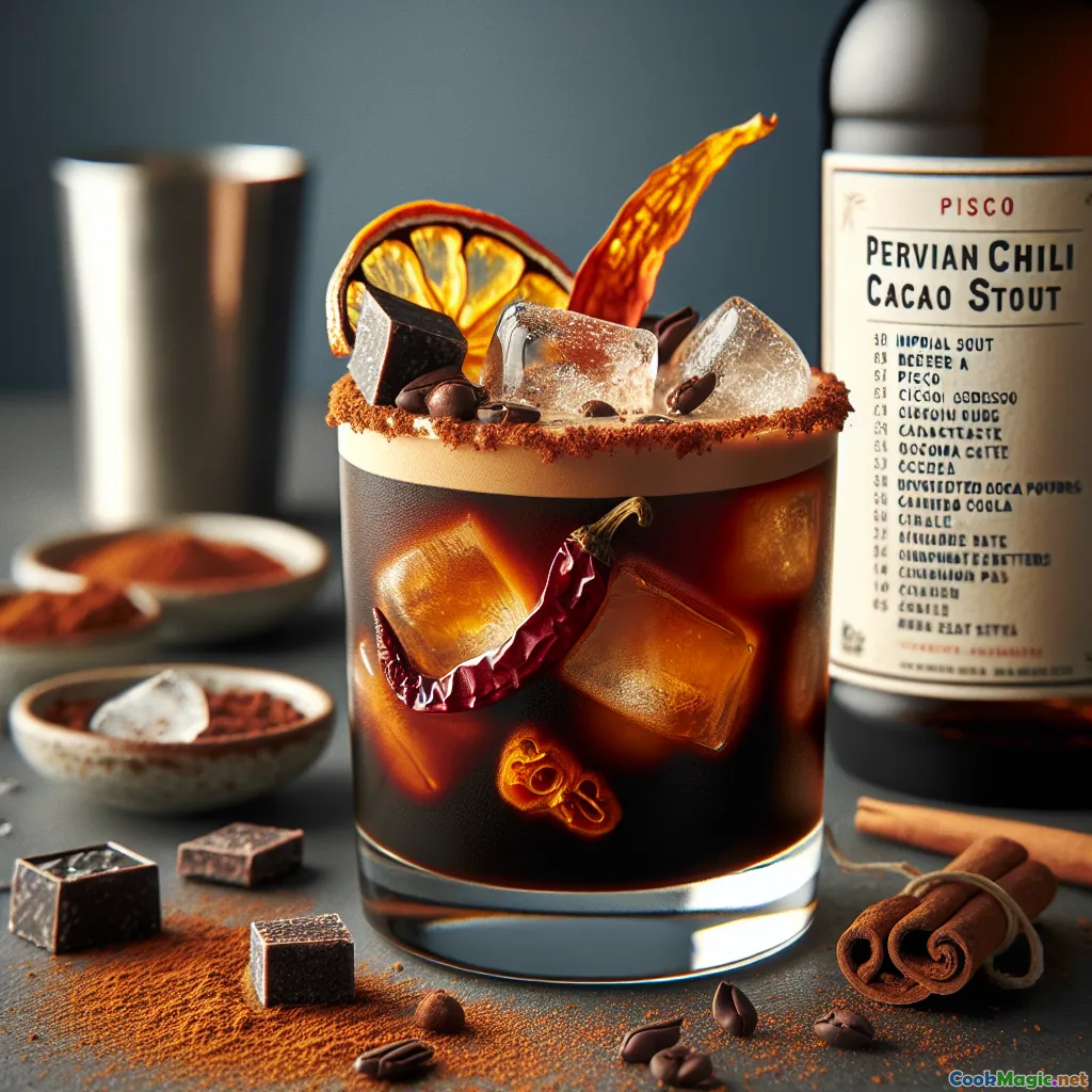 Peruvian Chili Cacao Stout is a spirited mash-up that celebrates three pillars of Peruvian flavor: pisco, cacao, and ají amarillo. Instead of masking the roast and chocolate notes of stout with sweetness alone, this drink amplifies them using a quick chili-cacao syrup. The result is a beer cocktail that drinks like a dessert you did not see coming: bittersweet, gently spicy, aromatic with orange and cinnamon, and capped with the velvet foam only a good stout can produce.