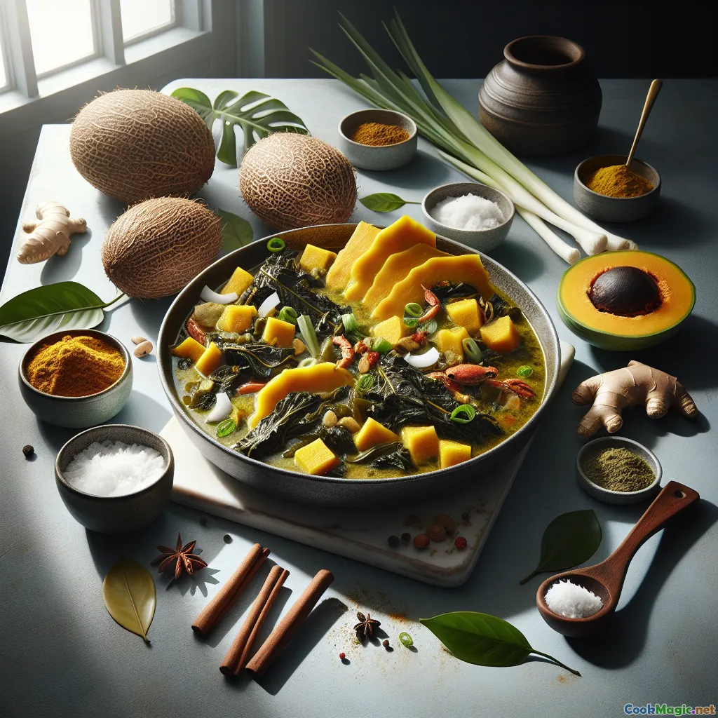 Silky callaloo greens and creamy breadfruit simmered in coconut, herbs, and gentle heat for a soulful, island-style one-pot stew.
