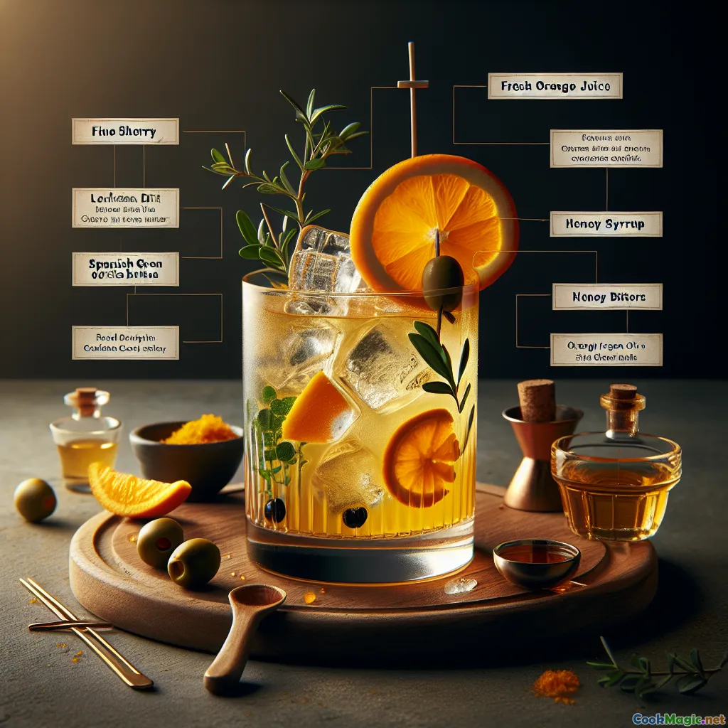 A sparkling Andalusian-inspired cocktail marrying fino sherry, fresh citrus, and a briny whisper—bright, elegant, and refreshingly low-ABV.