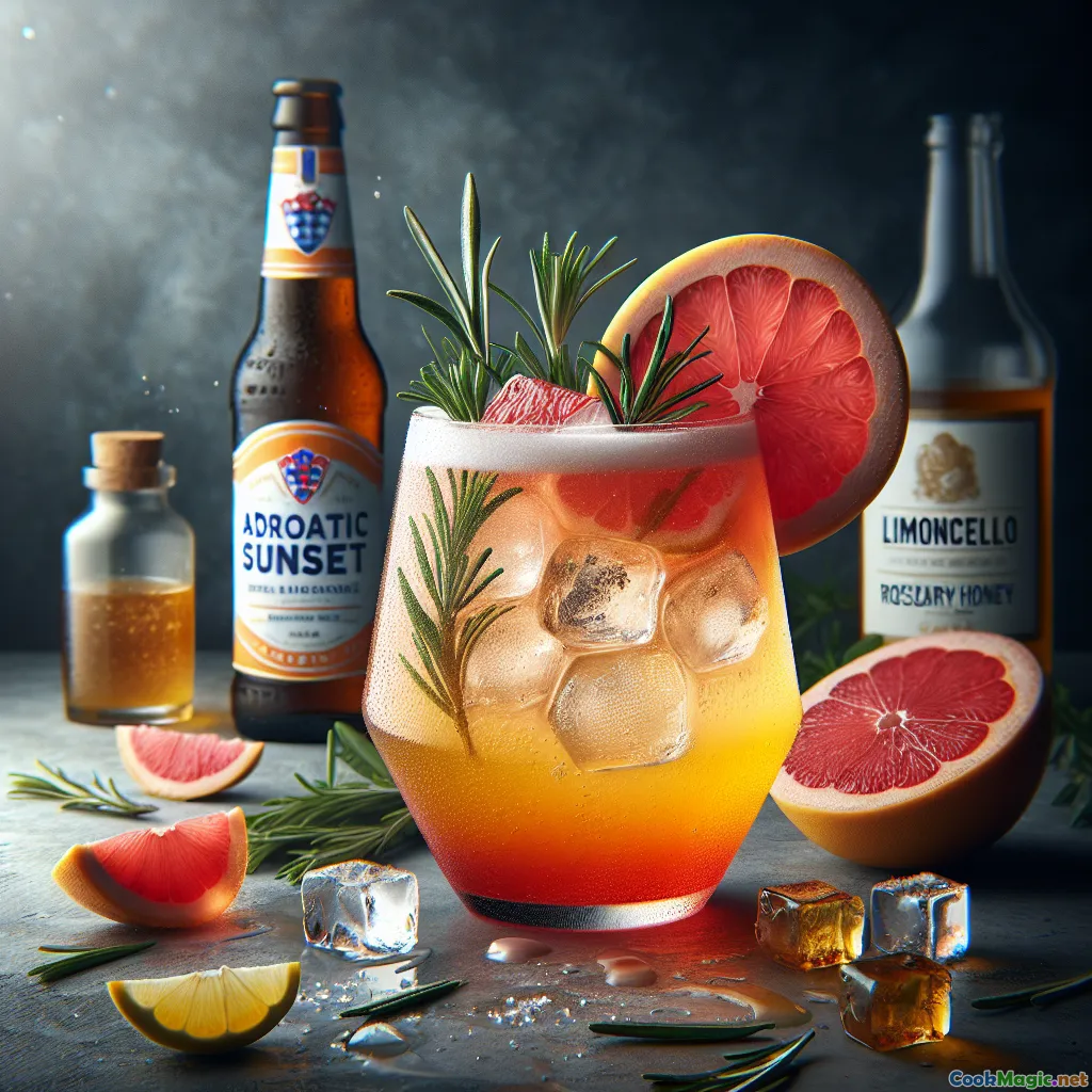 The Adriatic Sunset Shandy is a seaside daydream captured in a glass: crisp Croatian lager, bittersweet grapefruit, perfumed rosemary honey, and a sunlit kiss of limoncello. Light, sparkling, and visually striking, it nods to the salty breeze and warm colors of the coast at golden hour. The drink’s gentle bitterness from lager and grapefruit is balanced by a round, herbal sweetness, finishing with a refreshing lift from lemon and, optionally, a splash of sparkling water.