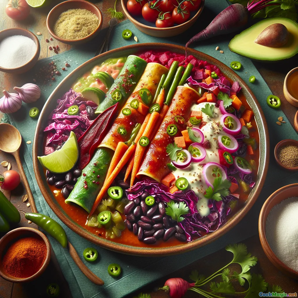 These Beet Enchiladas with Tangy Curtido marry two beloved culinary traditions: Mexico’s saucy, comforting enchiladas and El Salvador’s bright, crunchy, lightly fermented cabbage slaw known as curtido. The result is a vibrant vegetarian main where earth-sweet roasted beets and creamy queso fresco are wrapped in tender corn tortillas, bathed in a brick-red ancho–guajillo sauce, and crowned with cool, citrusy, pickled crunch. Every bite plays with contrast—soft and crisp, smoky and bright, rich and refreshing.