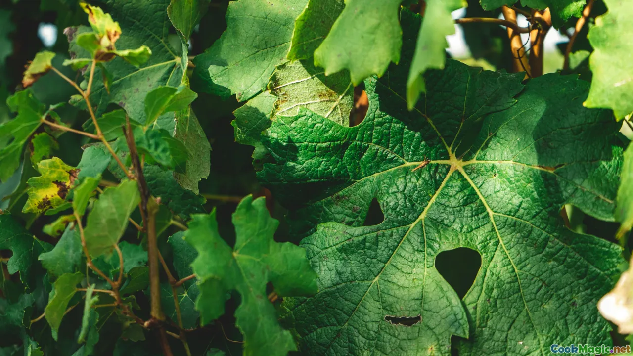 Dip leaves in boiling water for 30–40 seconds until pliable. Refresh in cold water and drain on towels, vein side up.