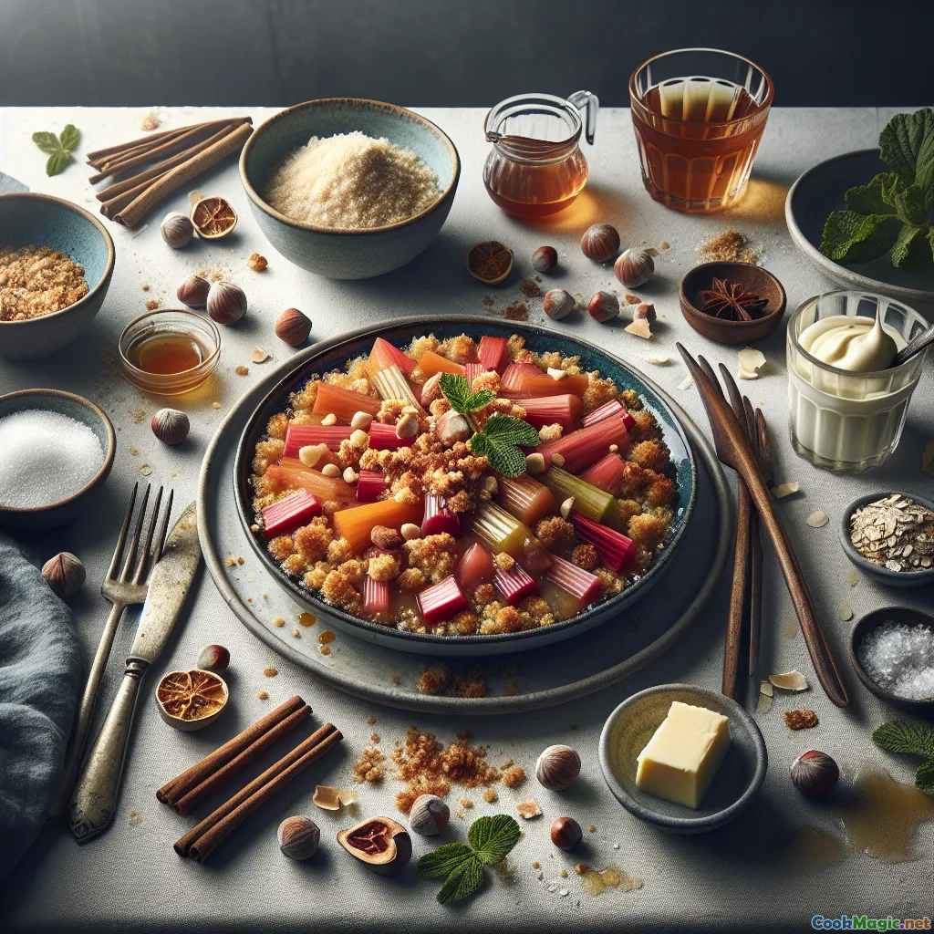 Rhubarb and hazelnut are a quietly spectacular pairing: the stalk’s zing slices through the buttery richness of a nutty crumble, while toasted hazelnuts provide a praline-like aroma and satisfying crunch. This recipe leans on classic British crumble technique—simple, honest, and bakeworthy—while bringing in modern textural notes from oats and nuts, plus a bright wash of orange to lift the fruit.