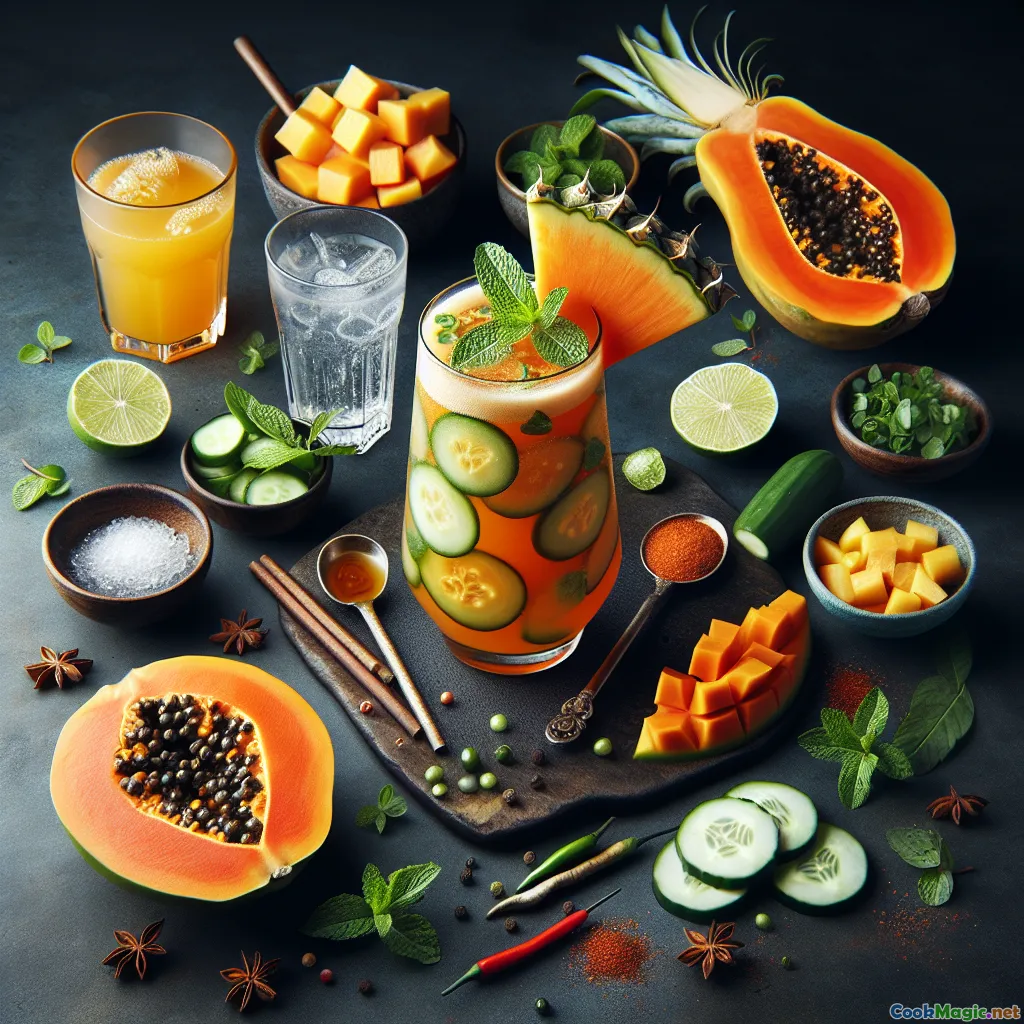 Papaya—a luscious, golden fruit—has long graced the tables of tropical nations, having found its way from the Americas to Southeast Asia via European explorers during the age of exploration. In Caribbean culture, papaya is adored for its versatility, popping up in compotes, salsas, breakfasts, salads, and, of course, cooling beverages. This punch pays homage to traditional Caribbean papaya juices while tipping its brim to English summer social life, where vibrant garden drinks reign supreme.