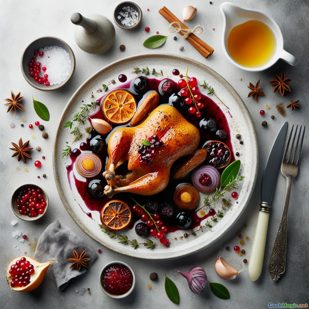 This recipe focuses on three pillars: properly dried skin for maximum crispness, a balanced glaze that leans into blackcurrant’s natural acidity, and a roast schedule that respects duck’s unique fat rendering. A brief dry-brine draws surface moisture out of the skin, ensuring it blisters into a shattering crust. Meanwhile, a reduction of red wine, stock, and blackcurrant jam—with optional fresh berries—delivers a glossy finish with nuanced sweetness, sharpened by vinegar and brightened with orange zest. A final butter enrichment makes the sauce silk-smooth without becoming cloying.