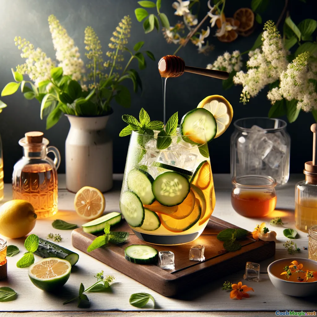 Lemonade holds a cherished spot in English beverage culture, both for its lightness and for the century-old tradition of using garden-picked herbs and flowers. The elderflower cordial in this recipe is a quintessential English touch; elder trees grow wild in hedgerows across the British Isles, and since at least the Victorian era, making elderflower syrups and cordials for summer refreshment is a firmly rooted ritual. Bringing in local honey isn’t just about pleasant sweetness—its delicate flavors and aromas evoke a genetic memory of rolling fields of golden rapeseed under broad skies. Adding cucumber (often seen in punches and Pimm’s-inspired drinks) delivers a clean, refreshing contrast to the wild florals and tangy citrus.