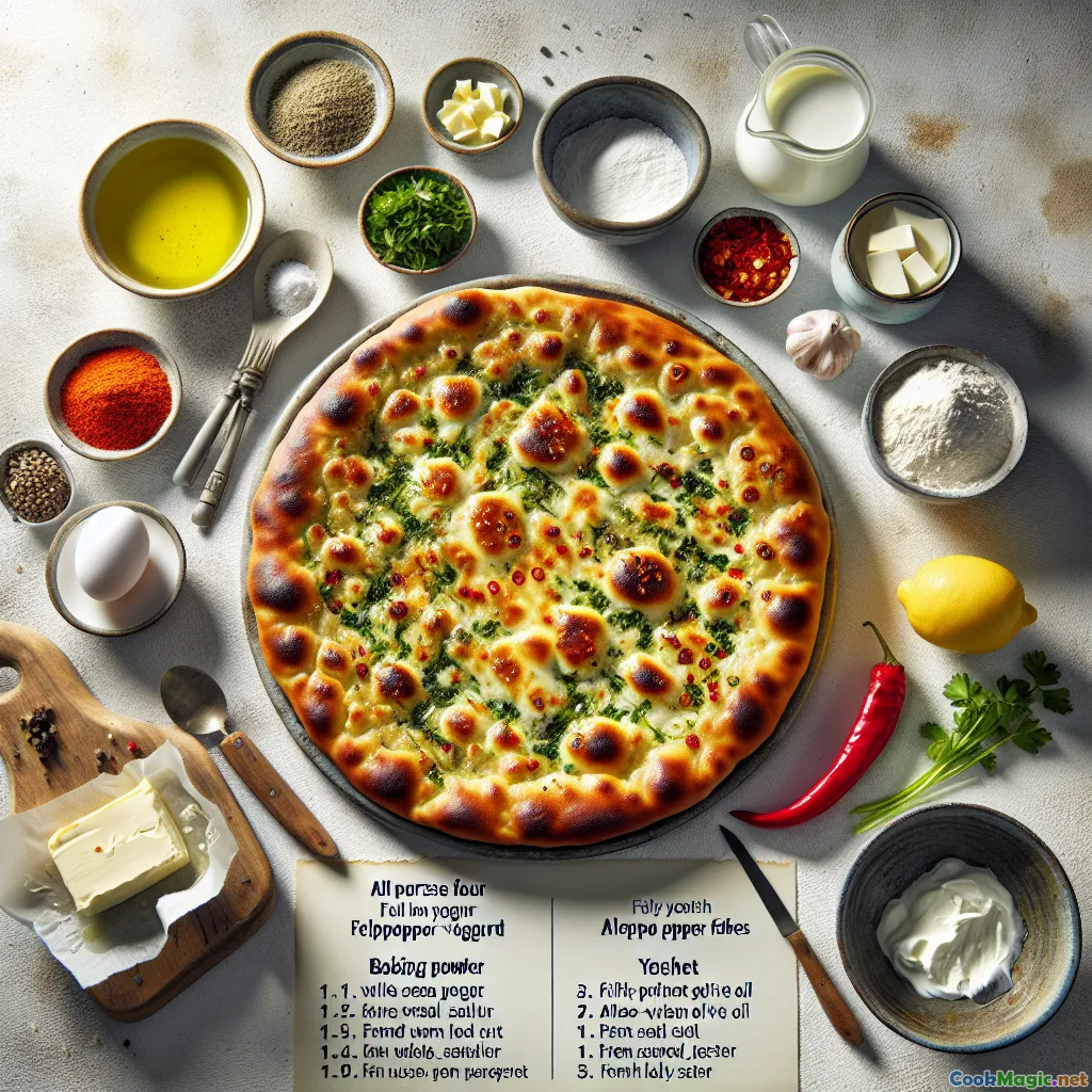Aleppo pepper reflects a culinary heritage rooted in Syrian and broader Levantine cooking. Its gentle heat and ruby hue have long seasoned kebabs, vegetable dishes, and breads. Yogurt-leavened flatbreads span the regionquick, economical, and adaptable. This recipe captures that spirit in a modern kitchen: no yeast, minimal resting, and a skillet instead of a tandoor or saj. While simplified, it honors the flavor profilewarm spice, tang, olive oilthat defines much of Middle Eastern comfort food.