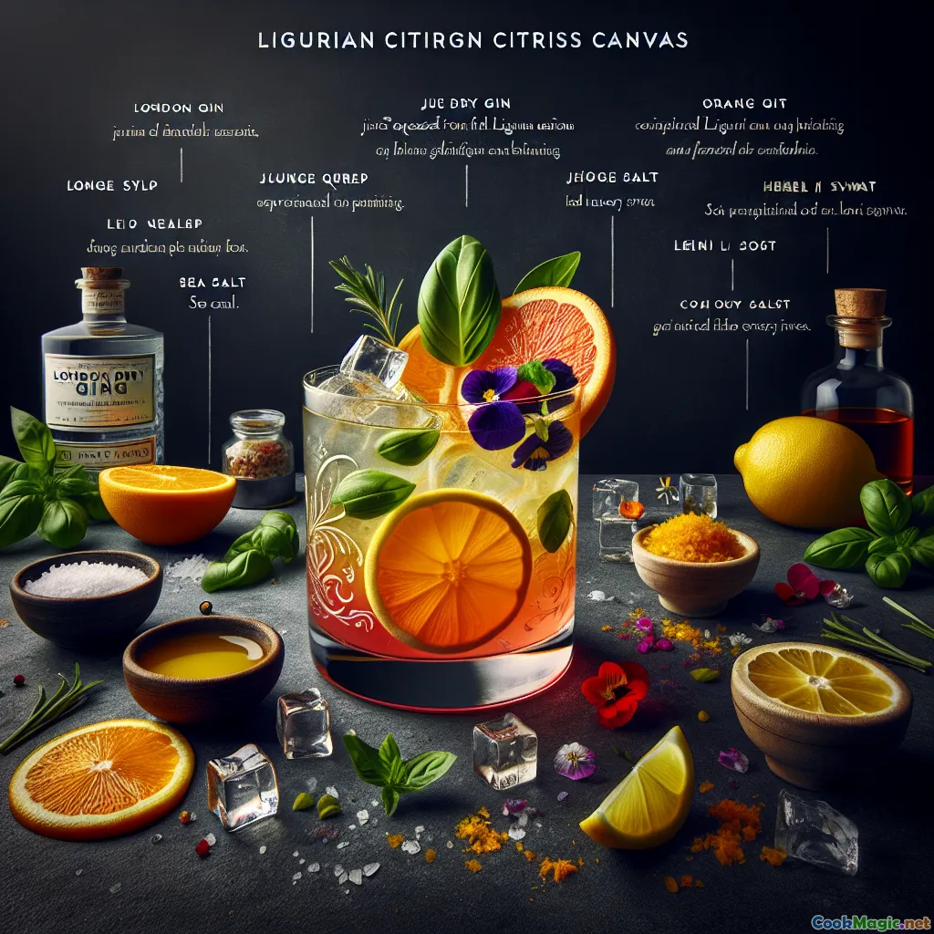 Ligurian Citrus Canvas: Layering English Craft with Mediterranean BrillianceThe 'Ligurian Citrus Canvas' is more than a cocktail; it is a vivid expression of Mediterranean fusion through the prism of English mixology. Drawing inspiration from Liguria—an Italian coastal region famed for its golden citrus orchards, abundant fresh herbs, and sun-dappled hills, this recipe infuses those flavors into the structure of a classic English gin cocktail. Using a premium London dry gin as the base, it celebrates a heritage of English spirit production while layering in distinctly Ligurian components such as basil, honey, and fresh citrus.