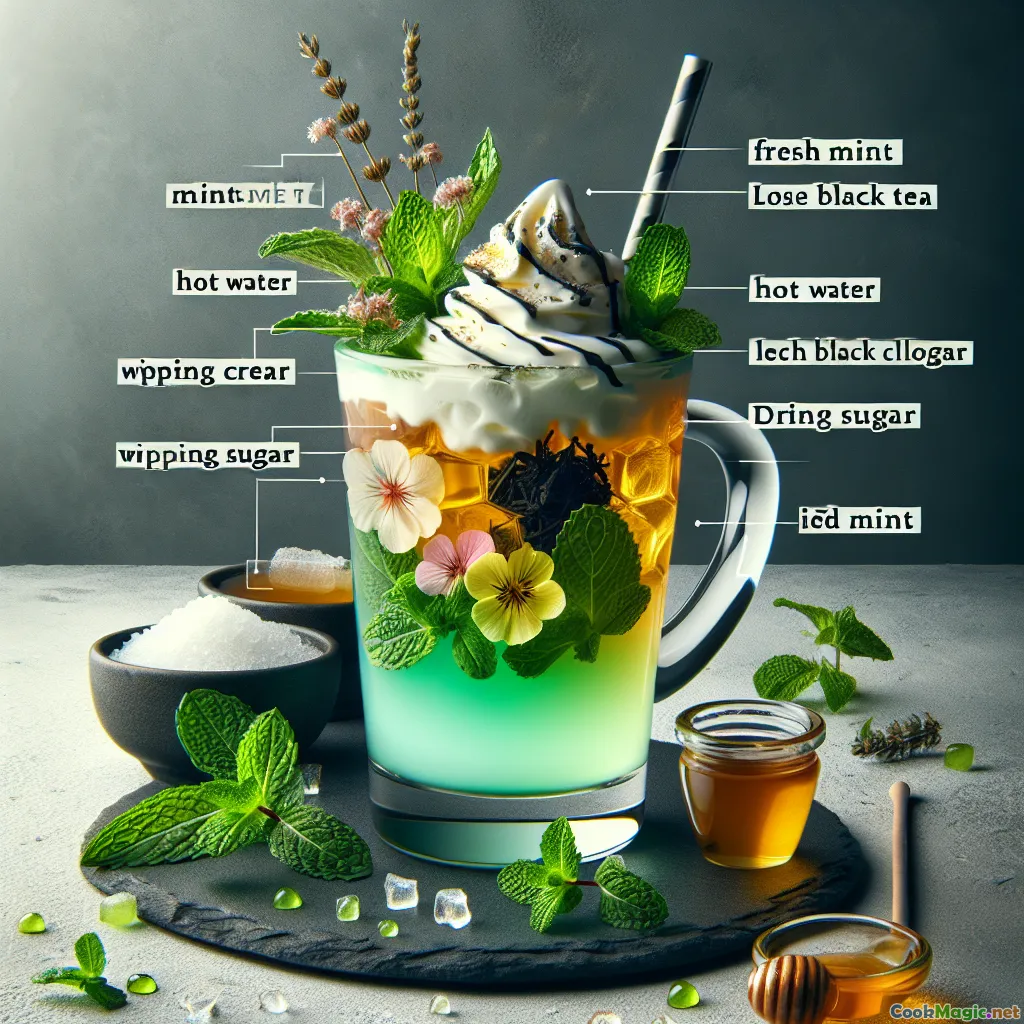 This refreshment sits deliciously between tradition and innovation. At its base is the timeless cup of English Breakfast or Earl Grey—classic black teas celebrated in endless afternoon tea services throughout the United Kingdom. But suddenly, the aromatic whiff of fresh mint steals the show, bringing vibrancy and a brisk, almost alpine breeze. Each glass is topped with a soft 'cloud' of gently whipped cream, echoing the English penchant for dairy in tea while visually conjuring images of rolling Ural mists.