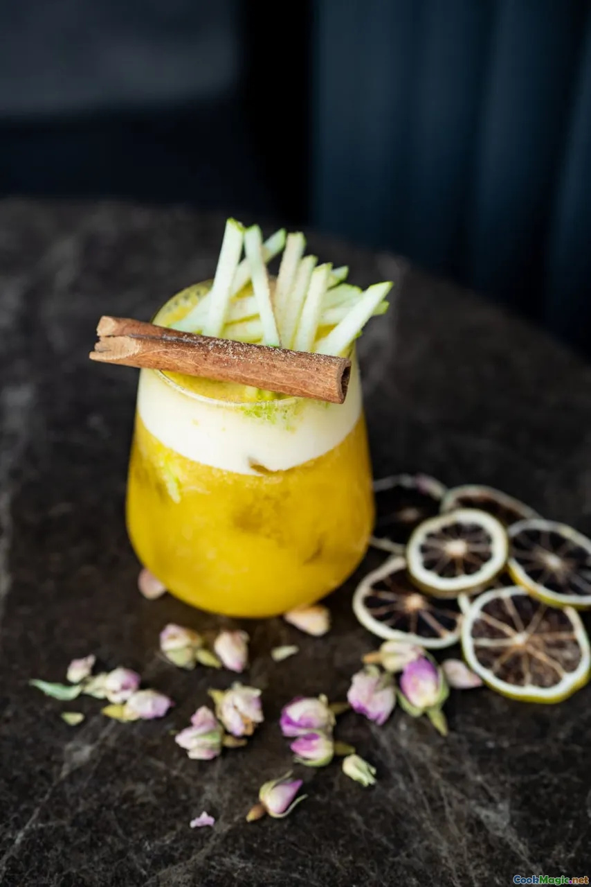 Apple juice conveys the charm of English orchards, while the cinnamon and clove spices echo the flavors of German glühbier (mulled beer), an increasingly popular winter treat from southern Bavaria. The incorporation of honey and citrus evokes both classic British comfort and innovative bar mixology—offering a modern English cocktail grounded in respect for continental warmth.