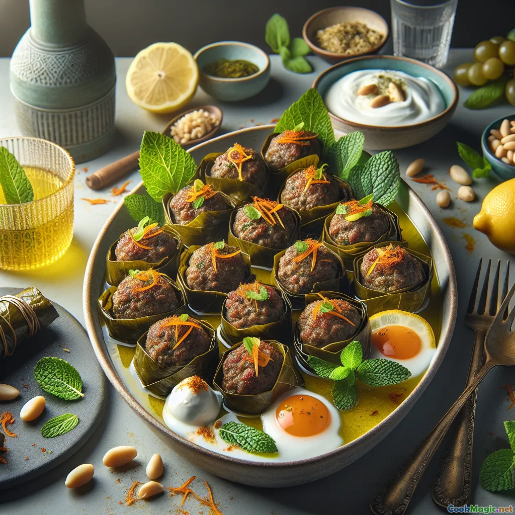 (Saffron Meatballs Wrapped in Tender Grape Leaves)