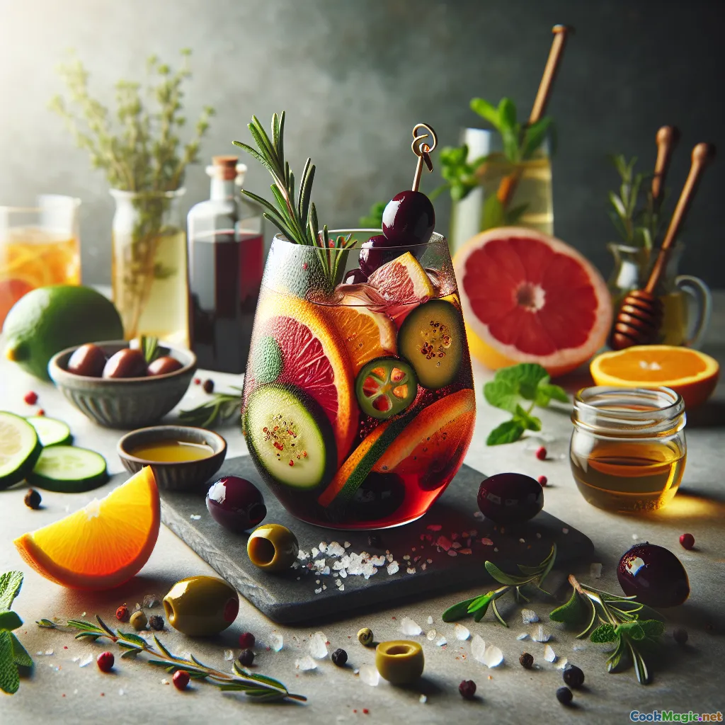 • Presentation: Skewer a halved olive with a folded grapefruit segment for a playful, savory garnish. A rosemary sprig doubles as both garnish and aromatic cue.